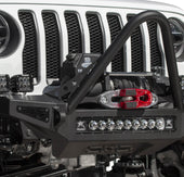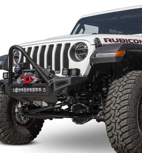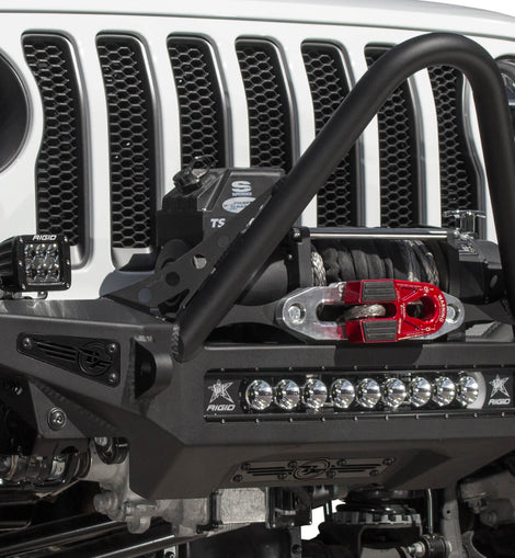 Give your Jeep Wrangler JL or Jeep Gladiator JT a transformed look with our Stinger front bumper for the Jeep JL/JT. The stinger winch front bumper looks good with any aftermarket fenders you put on your Wrangler or Gladiator. With greater approach angle to maximize offroad performance and two different style hoop options for front end protection, the Rock Fighter front bumper for the Jeep JL/JT gives your Jeep style and functionality.